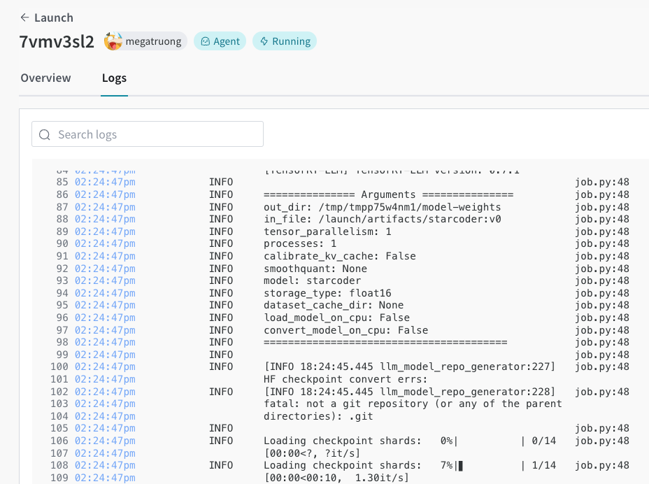 git https://github.com/wandb/launch-jobsGPUマシンでエージェントを起動します: